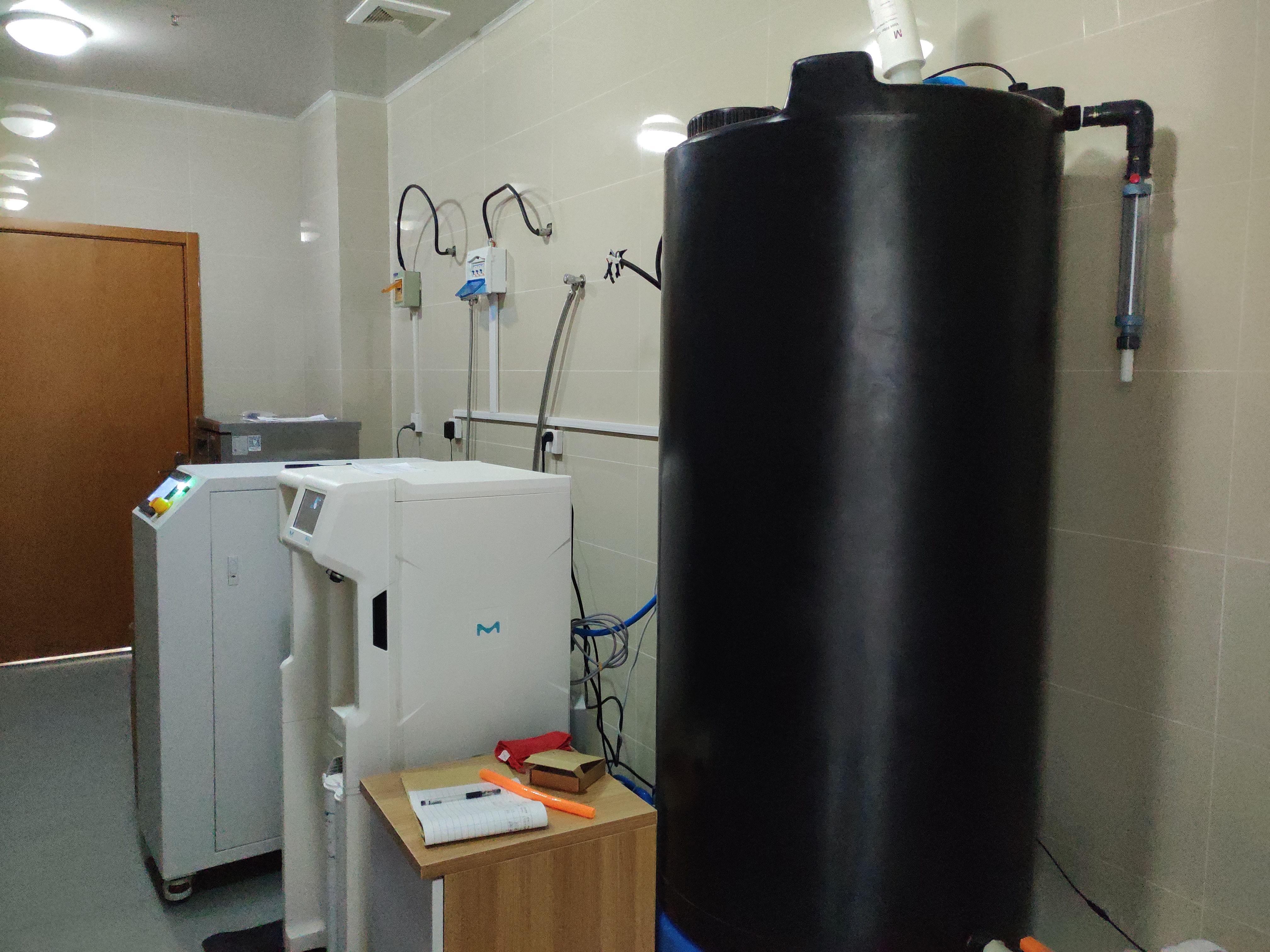 系统进水要求,电导率<1800μS/cm 25℃,通过纯化符合GB6682-2008相关要求的二级纯水;容量500升;制水量≥80升/小时,可24小时不间断制水。