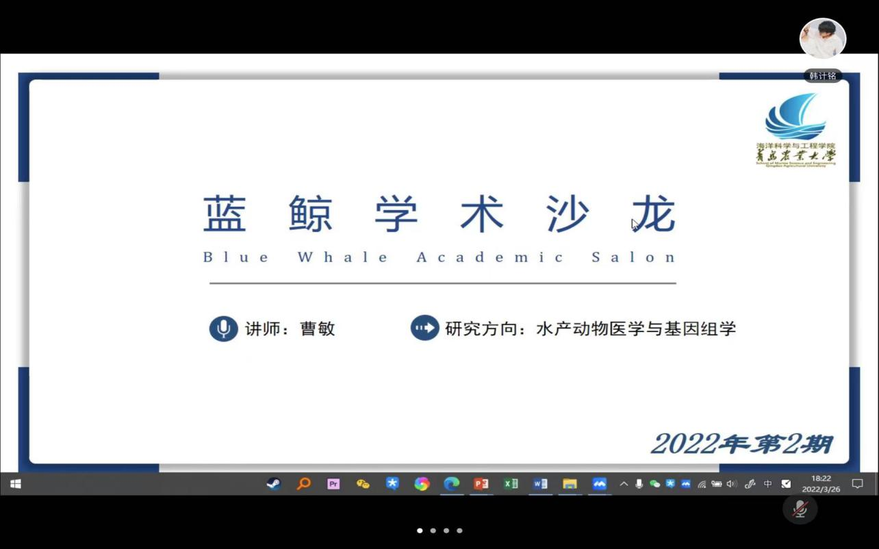3月26日,公司举办了“水产动物医学与基因组学”为主题的线上“蓝鲸学术沙龙”活动,曹敏老师应邀主讲,2019级、2020级和2021级部分同学参加。