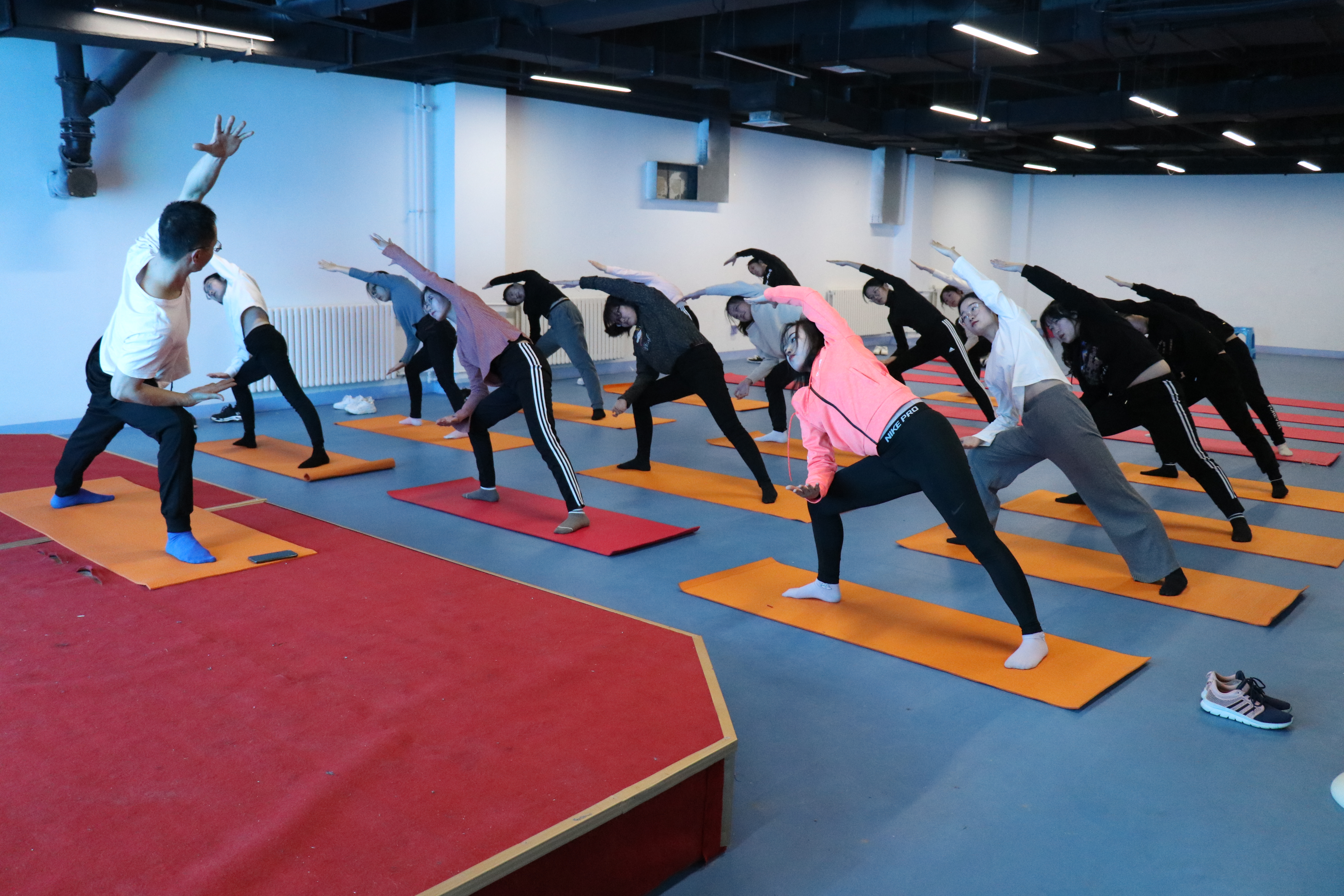 2月26日,三亿体育为丰富同学们的课余生活,在前一次有氧搏击操活动开展效果明显、员工反响热烈的条件下,于蓝谷校区老员工综合活动中心开展了第二次体验活动——瑜伽,特别邀请健身房专业教练前来教授。