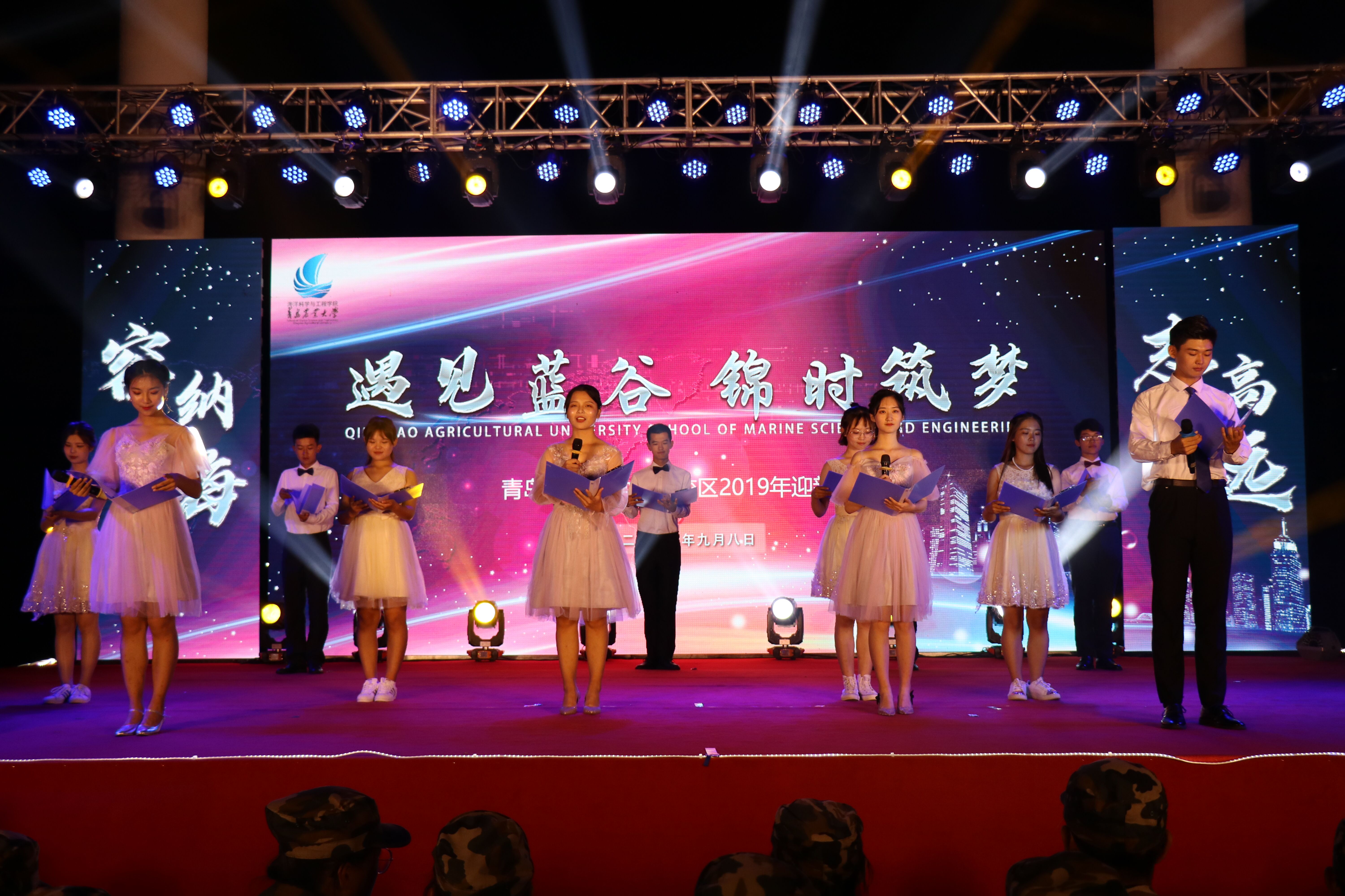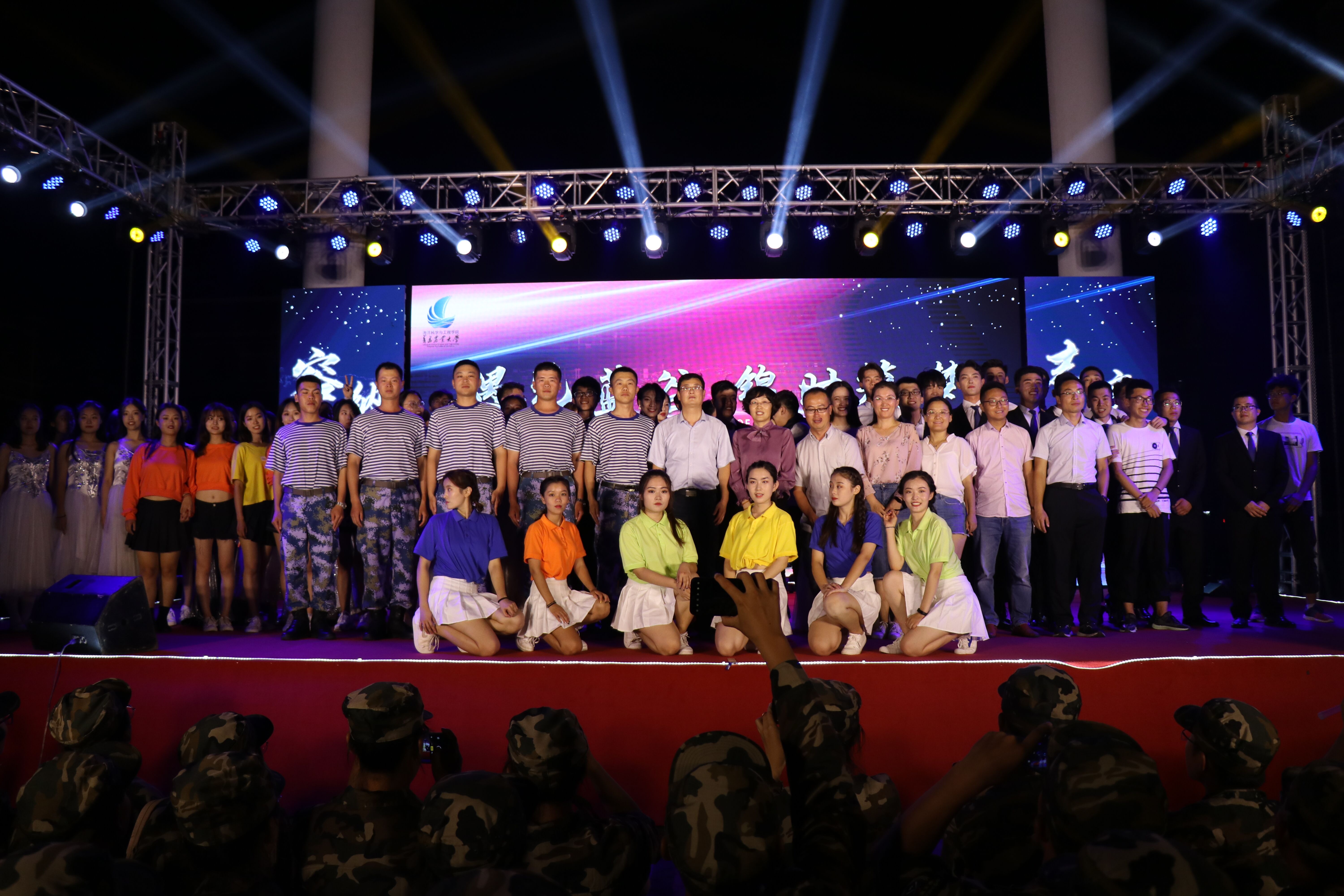 9月8日,三亿体育于蓝谷校区举办了“遇见蓝谷,锦时筑梦”迎新晚会。三亿体育经理聂品、党总支书记孙丙高、副经理李玉全、分团委书记王海霖、2019级班主任、伟东云教育产业园负责人及军训教官与全体新生共同观看了此次晚会。