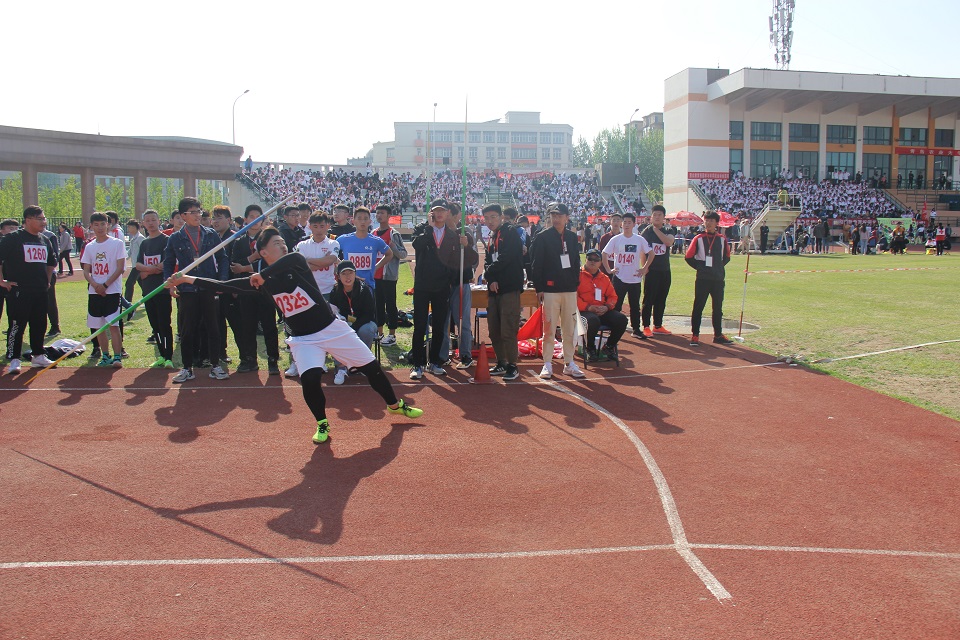 运动场上,运动健儿们身姿矫健,以饱满的热情展示着自己的运动才能。在标枪比赛开始前,高宣斌和赵晨斐在准备区进行着压腿,拉伸关节等准备活动,为即将开始的比赛注入能量。在比赛正式开始前,裁判让各运动员进行试掷以了解场地具体情况。运动员进行试掷的过程中,不断地寻找和调试鞋子的最佳发力点。“开始!”当裁判员一声令下,高宣斌两腿迅速蹬地,两臂积极摆动,保持身体前倾,用力蹬地,自然流畅地完成标枪后引、跨步起跑、加速冲刺三个连贯动作,一根标枪在空中划出弧线后,稳健地插入远方的地平线。赵晨斐亦不甘落后,提气运力、抛竿向上、一气呵成,娴熟的动作赢得阵阵喝彩。