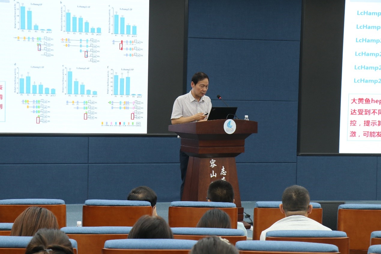 而后,陈新华教授带来了关于“大黄鱼重要免疫基因的功能研究”的报告。陈新华就“大黄鱼趋化因子与功能鉴定”、“大黄鱼基因组测序”、“大黄鱼免疫系统特征”以及“大黄鱼三条补体激活途径”四点展开探讨。陈新华教授用幽默诙谐的语言阐述了大黄鱼免疫的分子机制以及相关研究技术,为三亿体育水产免疫基因功能的技术研究提供了新思路。