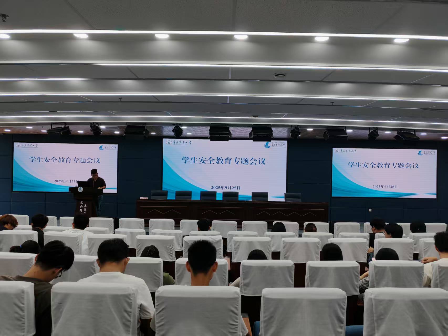 为全面贯彻落实公司安全工作会议精神,确保广老员工度过一个平安、祥和、愉快的国庆假期,9月25日,三亿体育在蓝谷校区206报告厅召开2025年国庆假期员工安全教育专题会议。各班班长、团支书及一会两中心员工干部共同参会,会议由辅导员郭建忠主持。