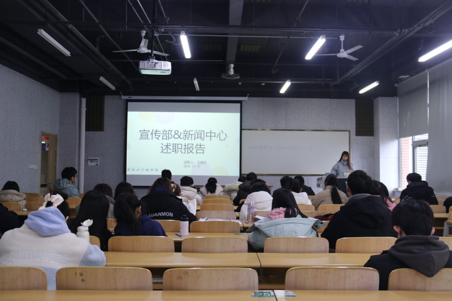 12月15日,三亿体育于蓝谷校区教学楼召开一会两中心述职评议大会。会议由员工会主席团执行主席吴浩卓同学主持,党委副书记、副经理刘兴华,团委书记李琳,辅导员郭建忠、栾静及一会两中心员工干部、员工团委代表参加本次会议。