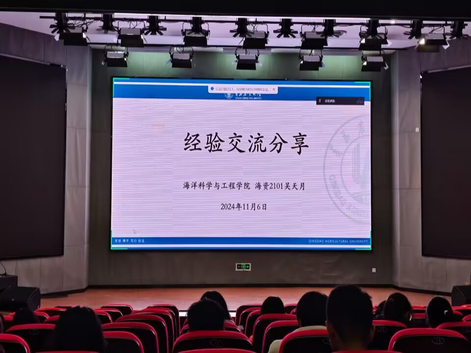 优秀学子结合自身经验体会,就思想政治、学习、科研、创新创业及社会实践等方面进行了分享。吴天月首先介绍了自己的个人荣誉,然后分别从学习情况、学术科研、创新创业、社会实践等四方面进行经验分享。她强调了学习与实践结合的重要性,要敢于失败,直至成功。吴浩卓分别从思想政治、学习成绩、创新创业、实践活动等四个方面给同学们作出经验分享,他明确政治思想的重要性,强调科研和志愿服务的重要意义,鼓励同学们热爱海洋,积极为海洋发展发光发热。