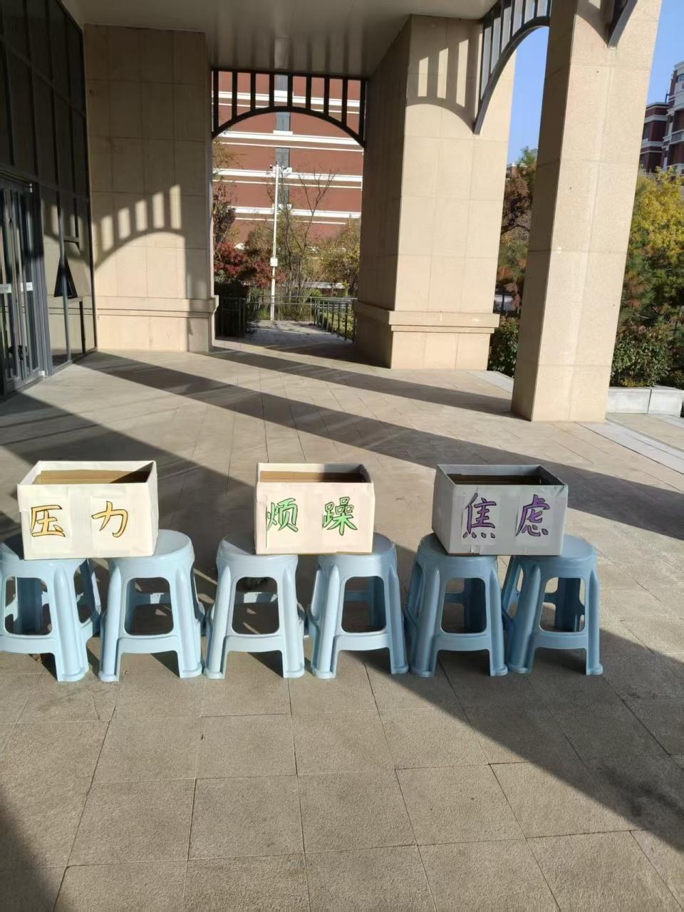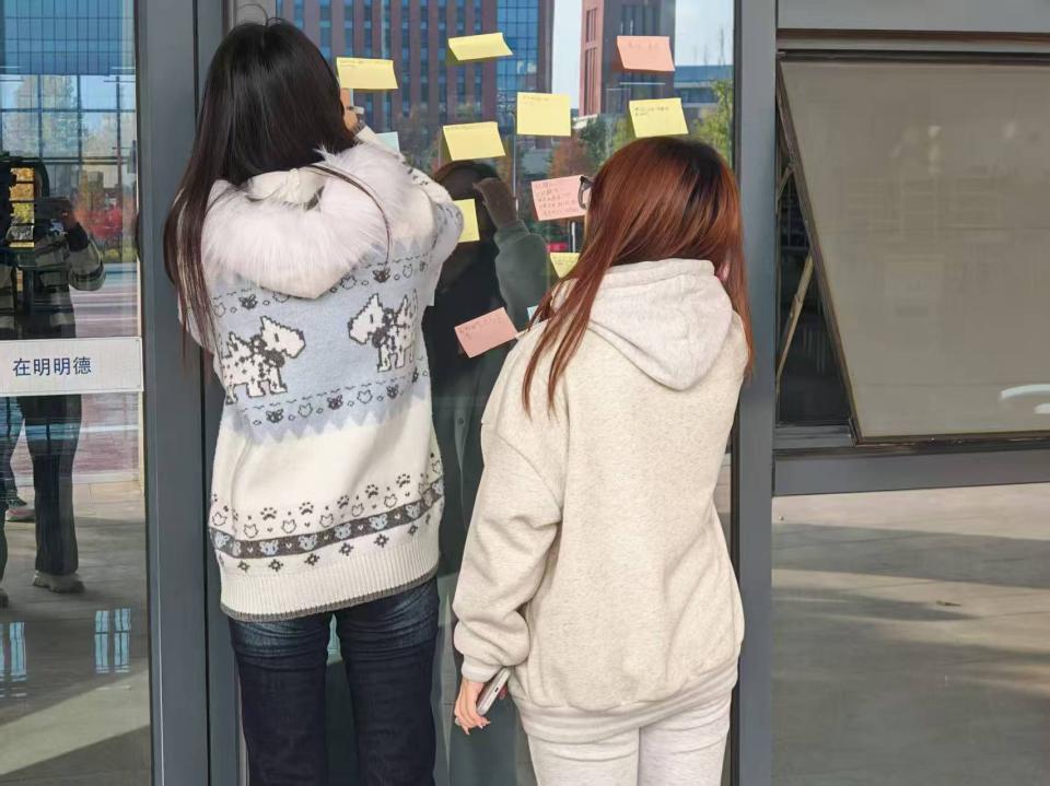 活动现场精心设置“情绪宣泄区”“正念放松区”两大核心区域,并配套情绪留言墙等互动环节,以动静结合的形式助力员工调节身心状态。情绪宣泄区内,贴有“焦虑”“烦躁”“压力”等标签的情绪箱成为热门打卡点,同学们瞄准目标投掷沙包,在酣畅淋漓的互动中忘却烦恼、收获纯粹快乐;正念放松区则为大家提供了静心休憩的空间,帮助学子平复心绪、觉察自我。情绪留言墙上,一张张便签承载着员工们的心情感悟与未来期许,在真诚分享中进一步梳理内心思绪,传递正向能量。