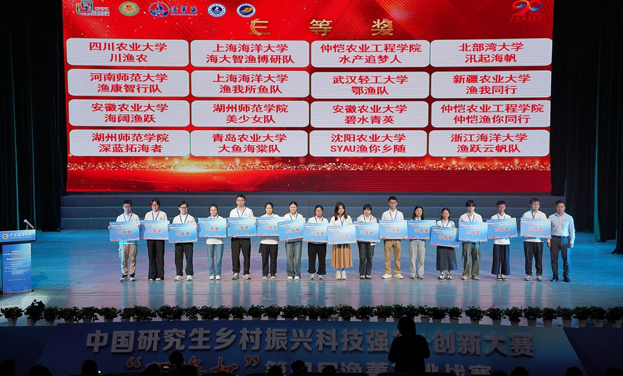 10月24-26日,由中国学位与研究生教育学会、中国科协青少年科技中心主办,广东海洋大学和大连海洋大学承办的中国研究生乡村振兴科技强农+创新大赛第四届渔菁英挑战赛决赛在广东海洋大学举行。三亿体育入围决赛的3支团队在激烈的竞争中脱颖而出,斩获团体一等奖1项、二等奖1项和三等奖1项,李琳、李庆飞老师荣获“优秀指导教师”称号。