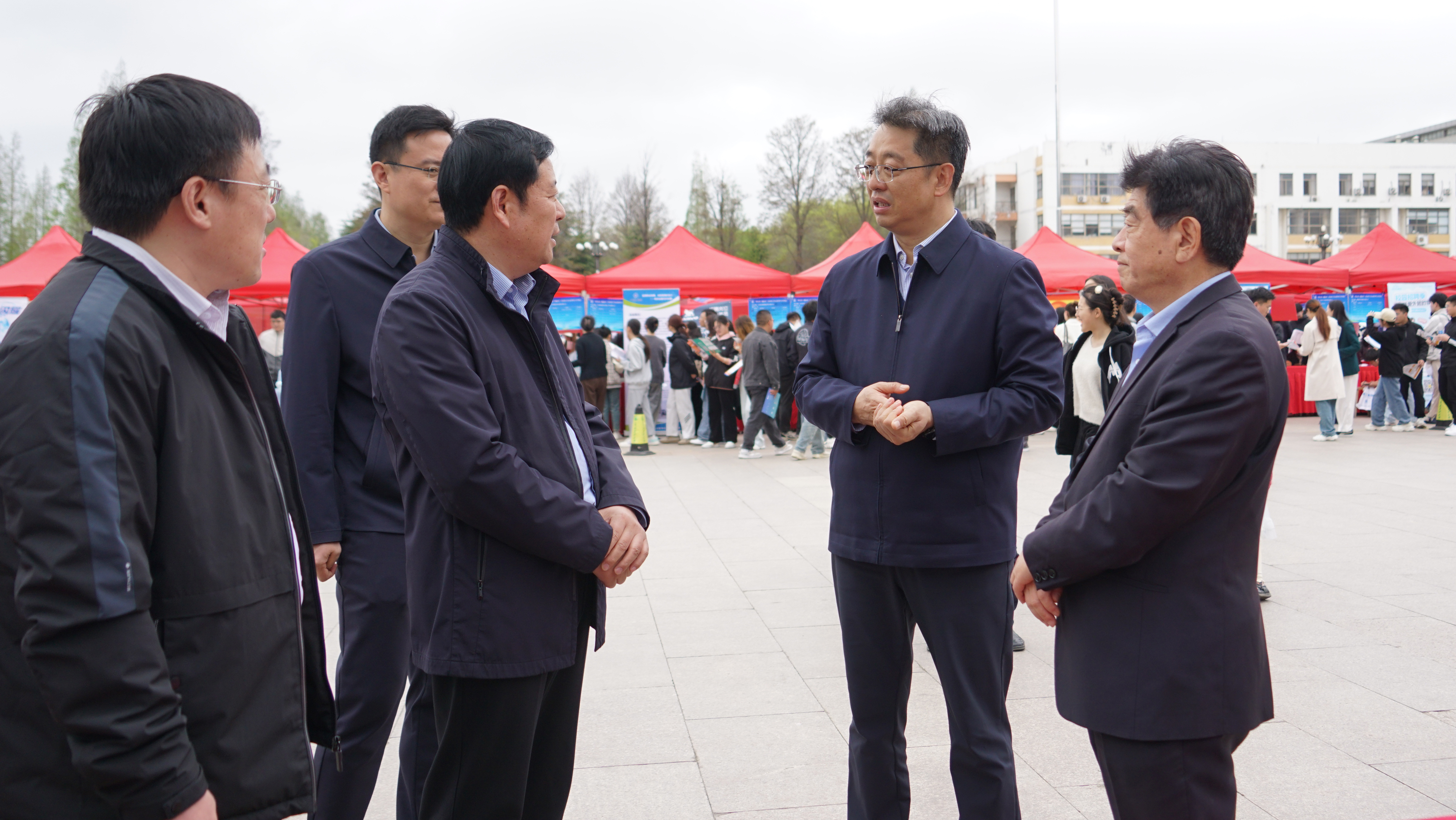 4月13日上午,三亿体育官网2024届毕业生春季供需双选会于城阳校区虹子广场成功举办。公司党委书记潘军、副董事长田义轲等来到三亿体育“访企拓岗洽谈专区”与公司师生深入交流,调研指导员工就业工作。