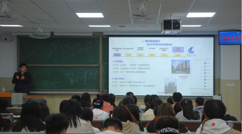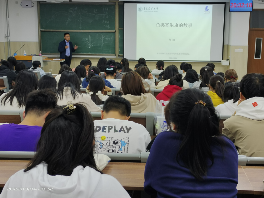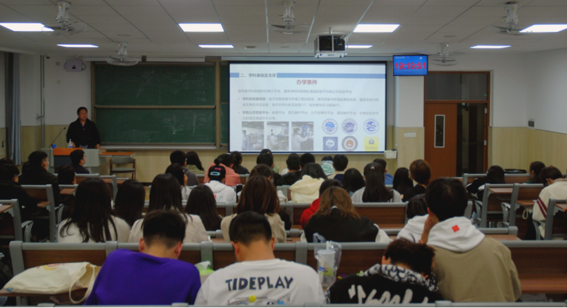 宣讲会上,专业负责人分别从专业培养目标、办学条件、专业研究与建设、主要成果、就业方向等方面向同学们作了详细地讲解。陈伟教授巧妙运用现实中的例子阐明了环境保护的重要性和迫切性,激发同学们的对专业的兴趣,增强了同学们保护海洋的责任感和使命感。夏斌强调,大国崛起,海洋意识必须觉醒,优秀的教学条件与教学设施体现出国家对人才的培养与公司对教育的重视。作为新时代青年,更要坚定海洋强国的信念,为实现中华民族伟大复兴做出自己的贡献。柳阳以《鱼类寄生虫的故事》为例,深入浅出地为同学们介绍了寄生虫学实验室的基本情况,通过讲述异育银鲫寄生洪湖碘泡虫的生活史研究过程,让同学们初步迈进科研的大门。最后,傅强讲述了专业的发展方向和前沿科技,鼓励同学们做理论知识丰富、实践动手能力强、身心健康的新时代老员工。除此之外,老师们纷纷寄语同学们,希望同学们能够珍惜未来四年短暂又充实的大学时光,认真学习,努力奋斗,实现自己的理想。