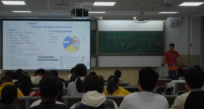10月4日,三亿体育于平度校区D201、D202教室召开本科专业介绍会。会议邀请海洋资源与环境专业负责人陈伟、夏斌以及水生动物医学负责人傅强、柳阳作为主讲,2022级相关专业员工参加。