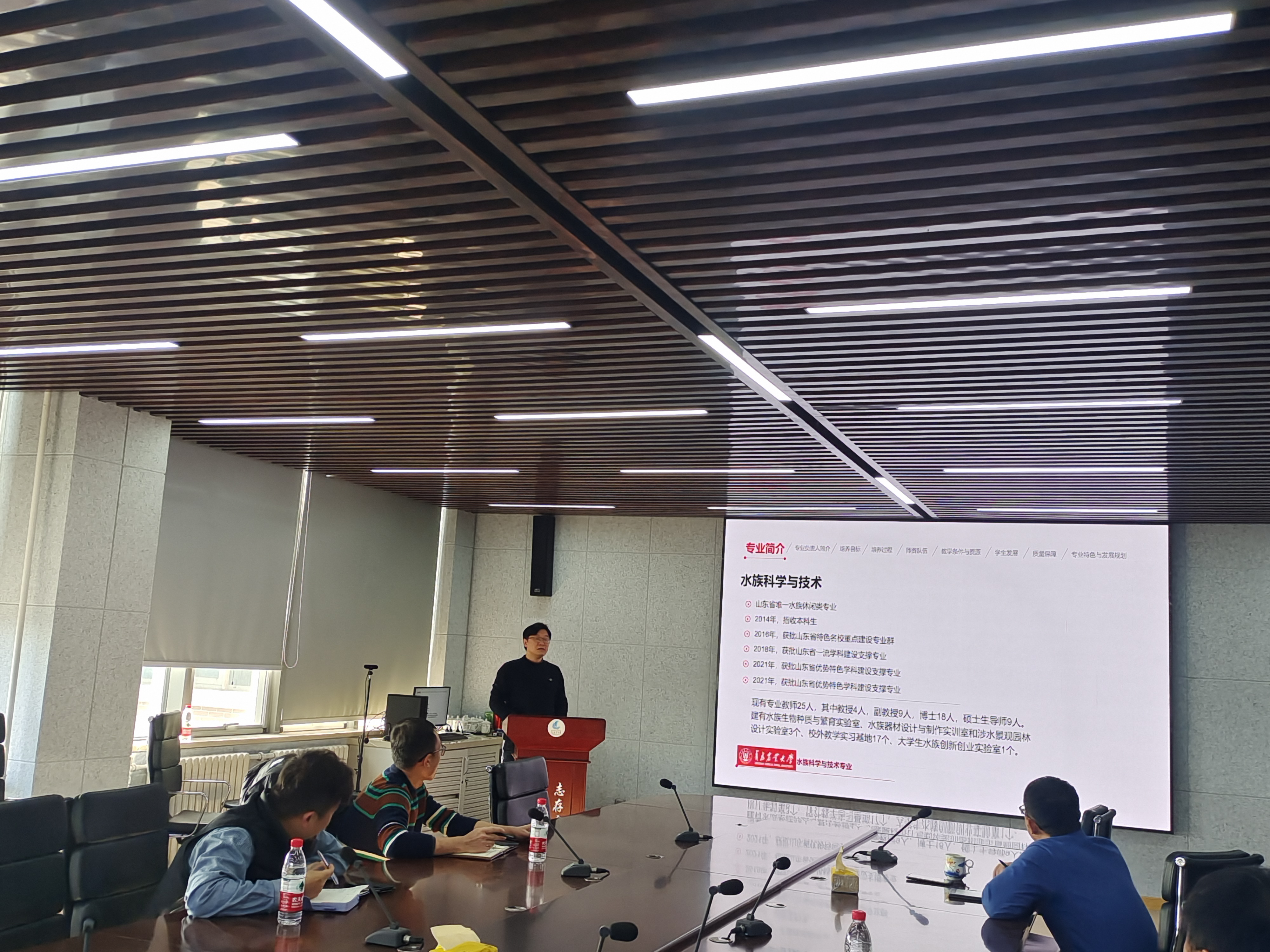 水产养殖学专业负责人王国栋、海洋资源与环境专业负责人叶景润、水族科学与技术专业负责人王峰、水生动物医学专业负责人傅强,围绕各专业建设背景、发展历程、培养目标、人才培养模式、课程体系、团队队伍、教学条件与资源、员工发展、质量保障、专业特色以及发展规划等方面进行汇报。参会代表结合当前专业发展现状、行业前景、课程改革和发展举措等对各专业和课程提出针对性的改进措施;结合专业建设的实际,进一步凝炼专业特色更好的服务师生。