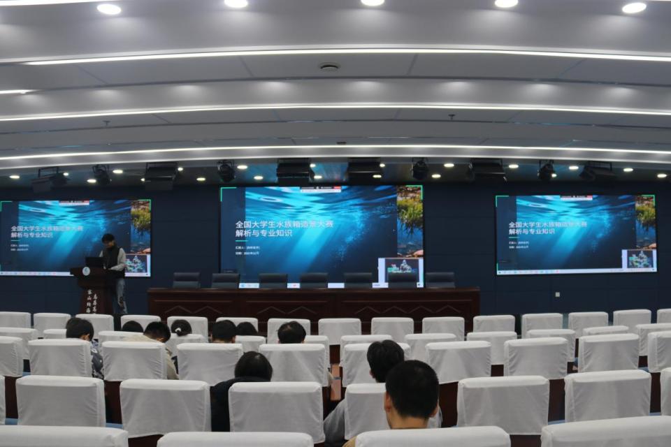 经验分享环节,三位在国家级赛事中斩获佳绩的优秀员工代表依次带来了精彩纷呈的分享。“欧倍尔杯”第三届高校老员工水产类创新实践能力大赛特等奖团队成员刘妮智慧精心准备了分享材料,内容从赛事流程的全景梳理,到关键节点的精准把控,再到临场发挥的细节技巧,条分缕析,干货满满,为同学们构建了清晰的参赛路线图。第十四届全国老员工海洋知识竞赛三等奖获得者王庆民同学,从赛事背景与核心内容切入,结合自身参赛过程中的趣味瞬间,让同学们在轻松氛围中领略海洋知识竞赛的独特魅力。第八届全国老员工水族箱造景技能大赛一等奖获得者李昊洋同学,则将焦点集中于作品的构思与呈现。他深入剖析了赛事的评审要点,分享了从主题立意、素材选择到实操技巧、现场心态调整等一系列核心心得,为有意参与技能类竞赛的同学指明了努力方向。