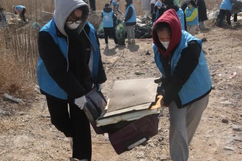 活动结束后,志愿者们返回集合地点,对垃圾进行称重,协调人员收齐物资并放到指定位置,最后进行了拍照留念。志愿者发现,捡拾的全部垃圾中,不可分解类的塑料垃圾占绝大多数。志愿者做好记录和总结后,将全部垃圾集中放到垃圾存放点。