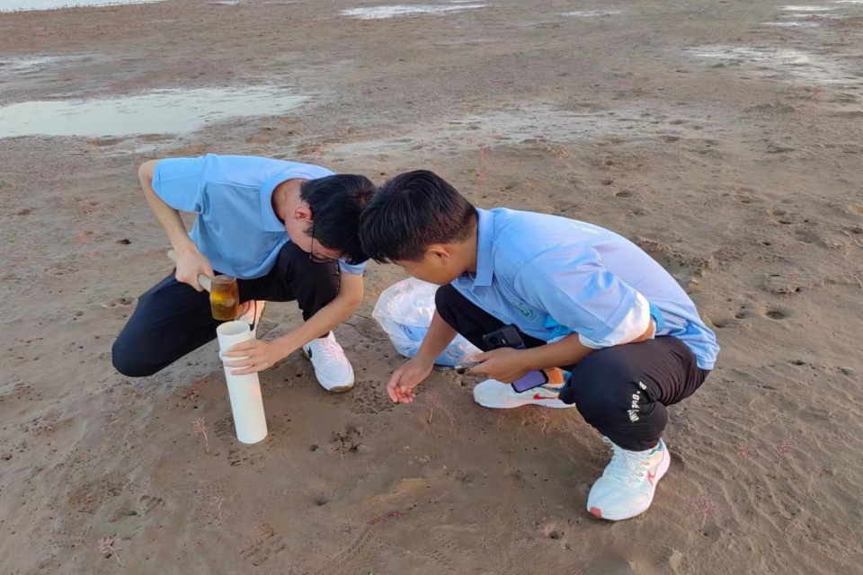 “守护同地毯”团队此次社会实践的主要目的是对修复区域进行定期的修复效果调查。调查内容包括盐地碱蓬生长密度、范围、形态学特征以及沉积物中氮磷等无机物的含量。