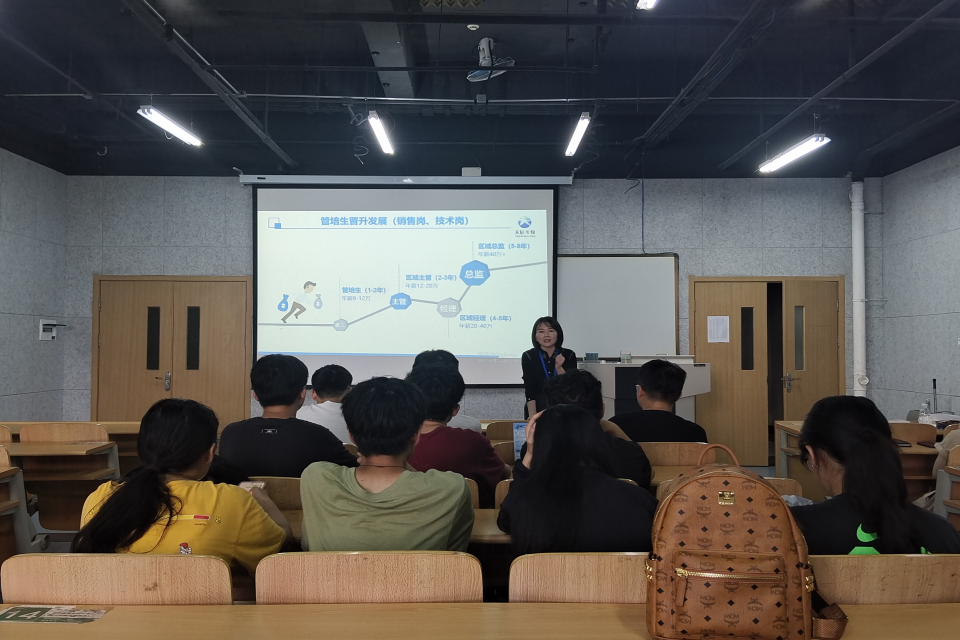 9月19日,三亿体育邀请湖北至正天辰生物科技有限公司于蓝谷校区教学楼101召开招聘宣讲会。宣讲会由公司人事总监李芙蓉,人事经理罗中玉主讲,毕业生及其他年级员工参加。