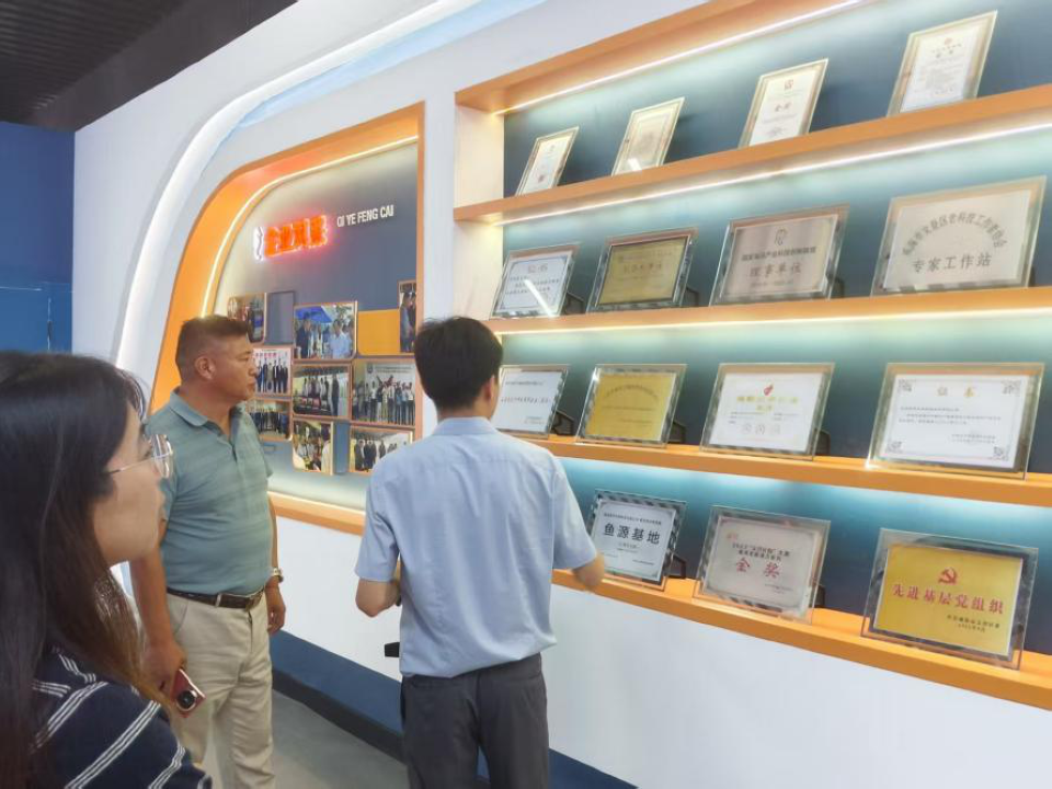 随后,志愿团来到威海银泽生物科技股份有限公司,公司负责人俞兰良带领志愿团参观海马科技展厅,详细介绍了本公司在海马种质选育、病害防治以及加工利用上取得的成果和多项关键技术难题的突破。如攻克了幼海马开口、海马疾病防控等技术难题,建立了海马生命周期繁育养殖技术体系。积极开展海马基因测序、种质选育、病害防治以及加工利用等全周期全过程观测研究。志愿团成员们认真聆听企业在海马养殖领域的创新实践,学到了先进的养殖技术和产学研合作的宝贵经验。