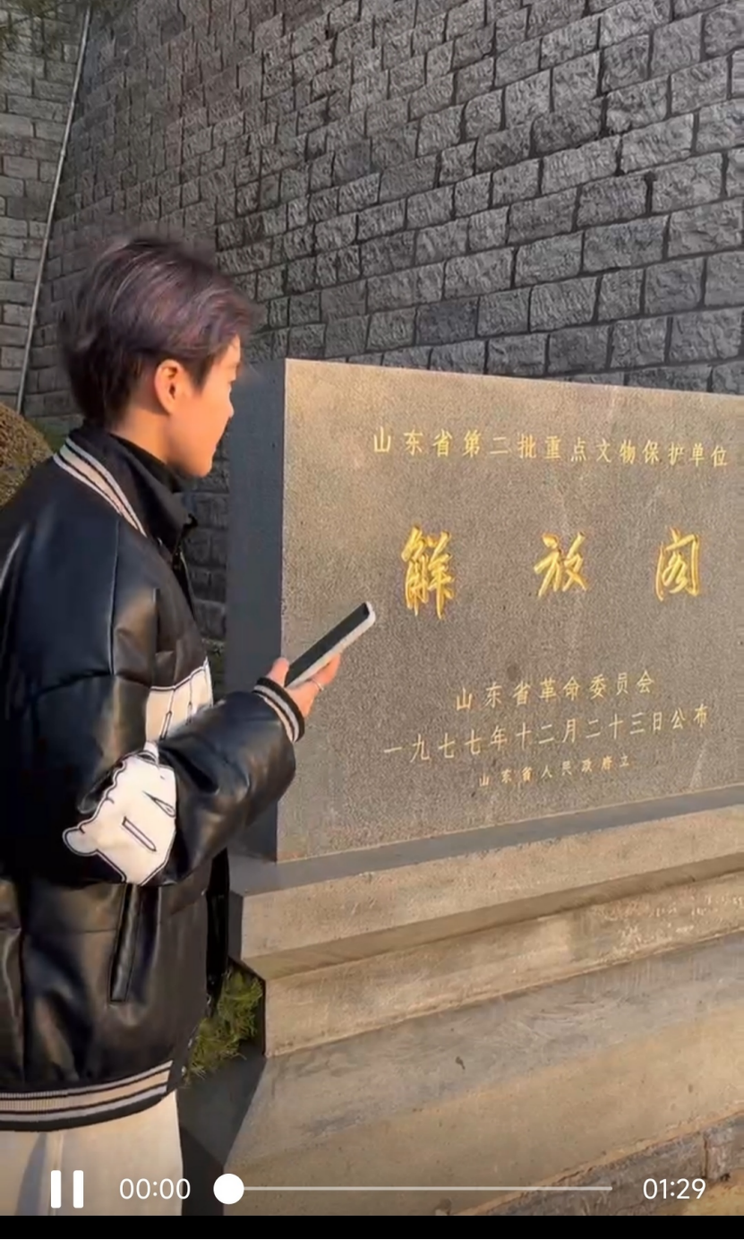 同学们录制了党史内容宣读、党史心得、介绍名胜古迹等方面小视频,通过实例运用,提高了同学们的积极性和参与感。经过传阅,《孟良崮战役》、《解放阁》深受同学们喜爱。《孟良崮战役》指出,齐鲁大地无数英雄儿女前赴后继、敢于牺牲,形成了以沂蒙精神为代表的红色文化,铸就了独具特色的红色基因。在革命时代,党领导沂蒙人民,不屈不挠,顽强拼搏,用31000多人的生命和鲜血,创立了沂蒙山根据地;为了新中国的诞生,沂蒙人用小车推着革命前进,用小车推出了胜利,形成了"立场坚定、爱党爱军、无私奉献"的沂蒙精神基调。《解放阁》使同学们了解到济南解放的历史和济南战役的艰苦历程、伟大意义和精神内涵,也对济南解放阁的历史变迁有了更详细的了解。述往思来,向史而新。实践团成员在本次实践中培养组织协调能力的同时进一步宣传家乡的红色故事与文化内涵,也在宣讲中锻炼了自己的讲解能力,在重温革命历程的同时坚定了理想信念。作为青年老员工,只有了解国史、党史,厚植家国情怀,讲好中国故事,传递中国声音,不忘初心跟党走,才能交出无愧于党和人民的答卷。