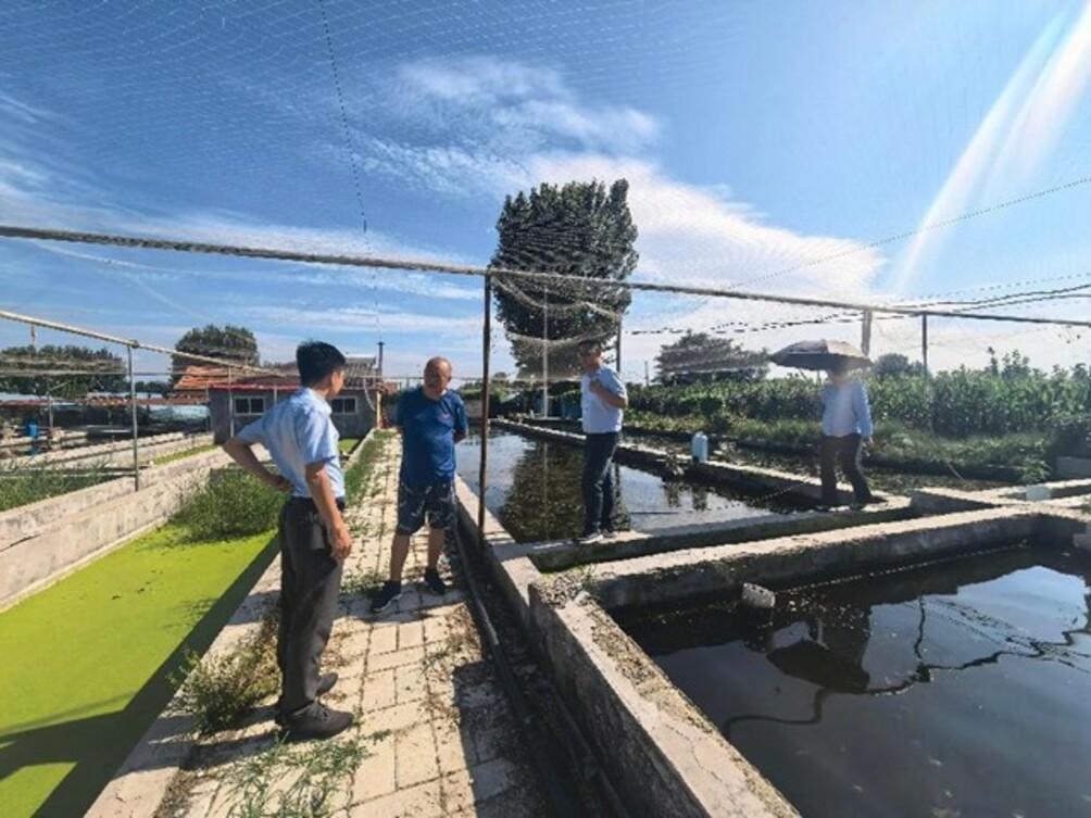 8月7日志愿团到达莱州荣杰养殖基地,通过实地考察、座谈交流和取样检测的方式展开调研活动。志愿团成员们认真聆听养殖户分享的实战经验,学到了许多扎根生产一线的真知识、真本领,同时也对养殖池在水质管理、病害防治等方面的难题进行了实际调研。团队成员们不禁感叹到“乡村振兴不仅需要科技创新,更要重视这些来自养殖户的实践智慧。”