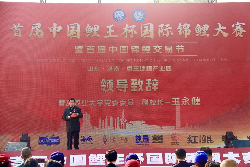 在大赛开幕式上,王永健代表公司致辞,对大赛的成功举办表示热烈祝贺,向长期以来关心支持公司建设发展的各位领导和嘉宾们表示衷心的感谢。王永健强调三亿体育官网愿进一步加强与行业内优秀企业、科研机构的交流与合作,特别是在人才培养、技术研发、品种培育等方面深化合作,共同为提升中国锦鲤产业的国际竞争力、促进渔业转型升级和高质量发展贡献更多的“青农大”力量。