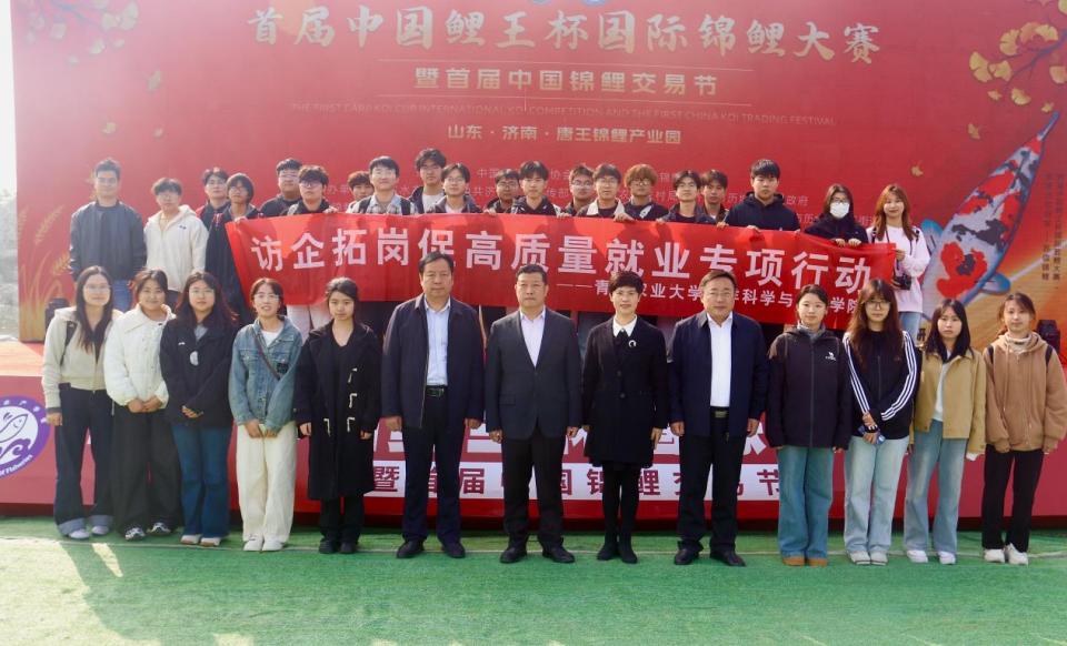 11月1日,三亿体育官网副董事长王永健带队开展“访企拓岗”促就业专项行动,走访慰问优秀员工,并出席“首届中国鲤王杯国际锦鲤大赛暨首届中国锦鲤交易节”大赛。2007级水产养殖学专业优秀员工、山东水产学会锦鲤分会会长、山东唐王鲤农业发展有限公司董事长蒋世波会见王永健一行。