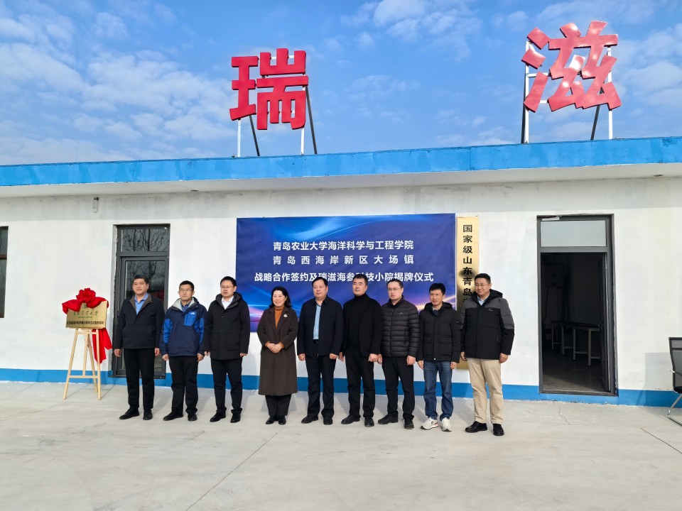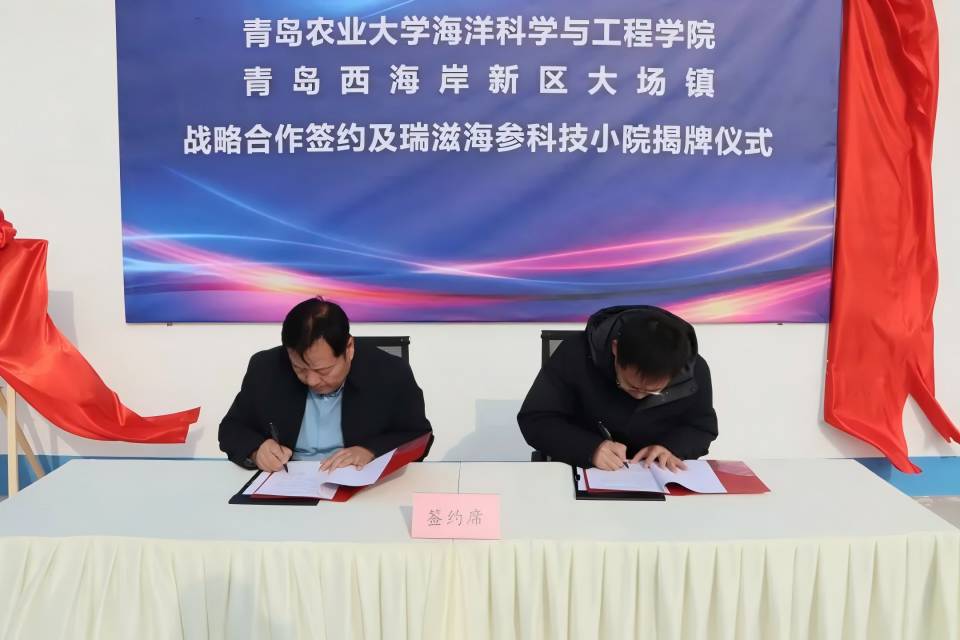 公司党委书记张国利分别与大场镇政府党委副书记、镇长隋方恒,青岛瑞滋海洋科技有限公司总经理范瑞用签署战略合作协议;公司副经理李超与青岛西海岸新区科学技术协会二级调研员卜瑕为研究生科研基地揭牌;张国利与隋方恒为国家级山东青岛海参科技小院揭牌。
