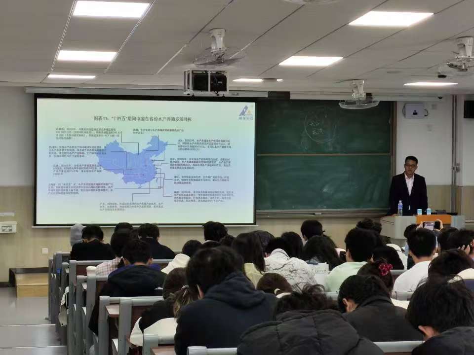两位讲师以自身及企业发展行情、历程及企业性质等为例,重点从专业概述、行业现状及发展前景、未来规划、专业学习等方面为新生们进行了详细讲解。李磊强调,水产是大行业、是朝阳行业、是高技术行业,并以全球水产行业发展历程为例,重点为同学们介绍分析了水产养殖行业的分类、各水产企业产业链情况,勉励同学们要热爱自身专业,把握未来。秦开栋结合自身科研经历,就同学们关注的考研、工作、创业、未来规划、单位选择等问题展开讲解,向同学们提出鼓励、寄予希望。两位讲师耐心为同学们解疑答惑,将经验传递,让同学们对专业领域的认识更加深刻。