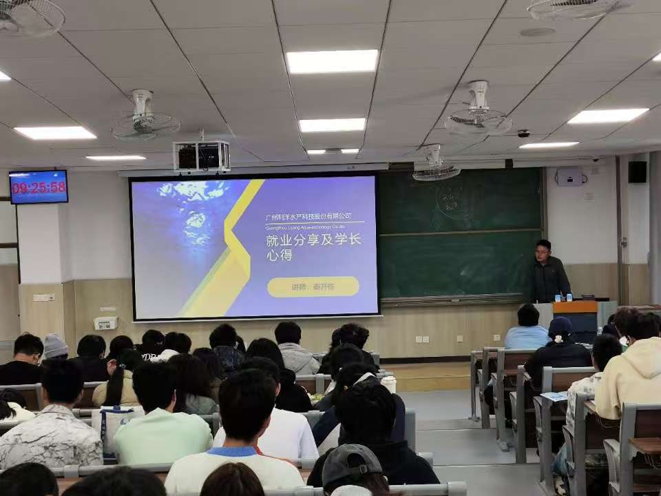 为了助力2024级新生深入了解所学专业内涵和专业发展前景,培养同学们的专业规划意识与理性抉择能力,坚定专业信心,树立个人目标,10月23日,三亿体育于平度校区博学楼A202、C107开展大一新生专业教育讲座,会议邀请广州利洋水产科技股份有限公司企业讲师李磊、秦开栋进行主讲,水产养殖学专业和水生动物医学专业全体2024级新生参会。