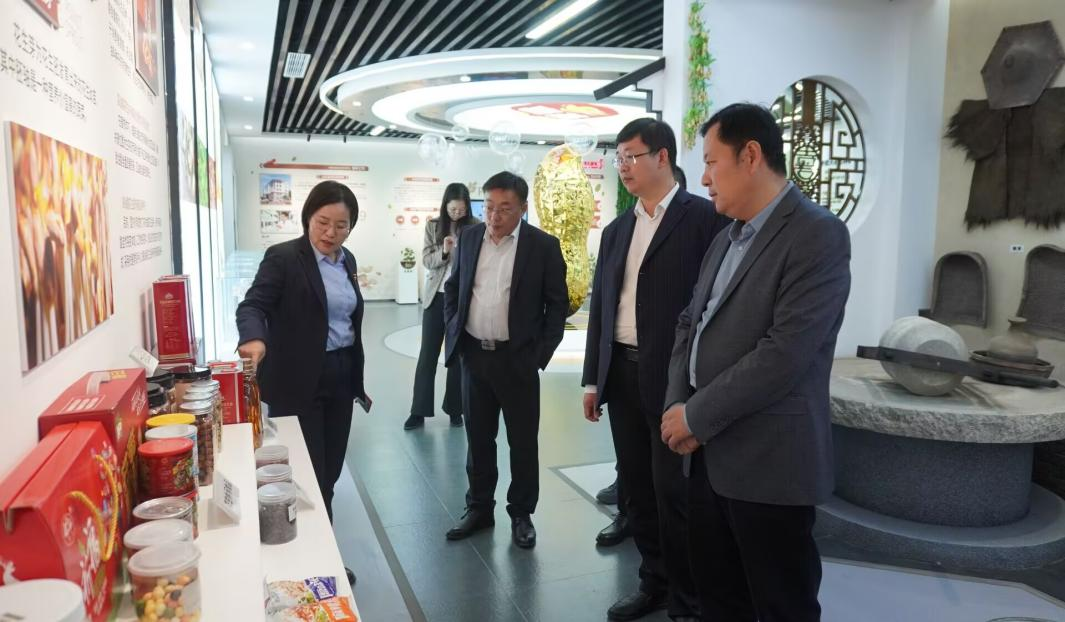 张国利一行在宋福荣的陪同下参观了花生文化馆,并深入生产一线,实地察看了企业的生产流程和产品质量控制,详细了解企业的历史文化、发展历程、运营情况和人才需求。
