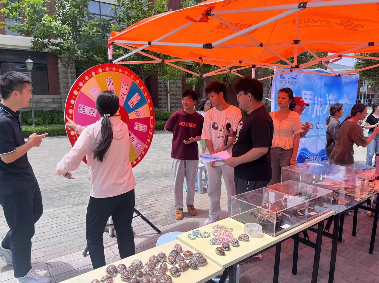 公司于平度校区开展了不同形式的海洋日校园文化系列活动。设立世界海洋日新深度唤醒签名墙,大家纷纷在签名墙上留下自己的名字和寄语,表达自己对海洋保护的决心和期望。开展海洋主题漆染活动,让参与者们沉浸在艺术与科学的交融中,通过亲手绘制海洋漆染图案,感受海洋的无限魅力。举办海洋知识科普展览,介绍海洋生物标本,让师生们更深入地了解海洋生态系统的丰富多样性以及物种的生态习性。海洋知识竞答区,同学们通过旋转转盘选择回答题目,题目丰富,涉及海洋科学、海洋生态、海洋资源、海洋安全等方面,既考验了大家的海洋知识储备,又激发了大家学习海洋知识的热情。