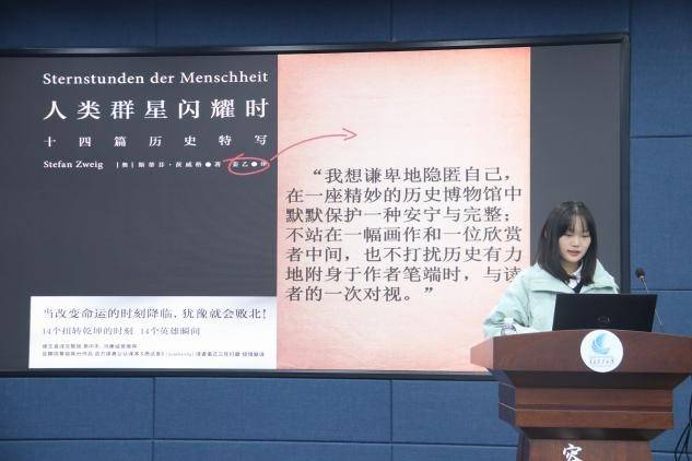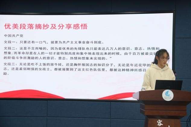 主持人有趣又充满激情的开场辞为同学们开启了阅读的大门,随后选手们依次进行书籍分享,发表自己对书籍的品系感悟,展现了同学们的读书精神。选手们胸有成竹、沉着冷静,在好书分享环节中,上场的21名选手思路清晰、语言生动,表达着自己对推荐书目的热爱和见解,从中感受到选手们知识储备的丰富和对文学知识的了解。经过层层角逐,水族科学与技术2021级1班的赵炳权同学《追寻》和水产养殖学20121级2班的马晓靖同学《许三观卖血记》获得一等奖。