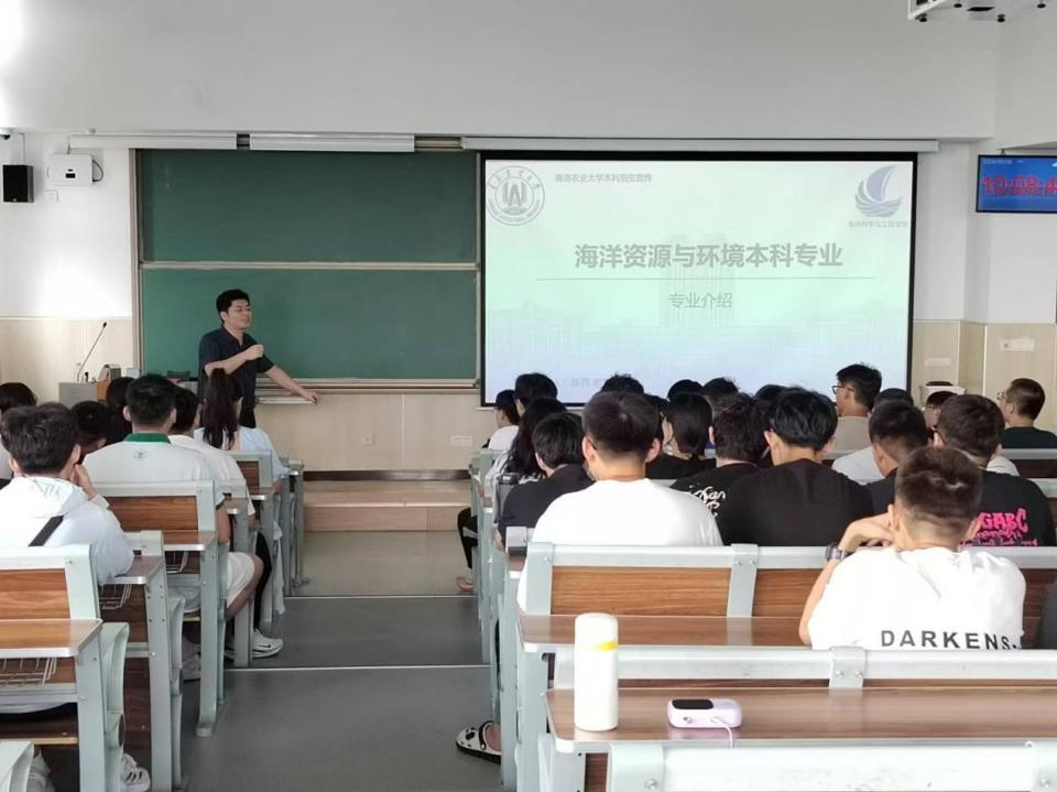 四位老师从专业发展前景、人才培养目标、课程设置特色、实践实训教学等方面,讲解了各专业的基本概况和学习目标。王国栋以自身经历让同学们正确看待水产养殖学专业以及水产养殖相关就业方向,着重强调了专业培养特色,并就水族科学与技术专业的就业去向与同学们进行了交流。夏斌和叶景润介绍了新世纪海洋资源、海洋环境保护的必要性与重要性、专业背景、发展历史、培养特色、培养目标要求以及就业方向。傅强介绍了个人经历、研究方向、水生动物医学专业发展前景、就业前景、基本任务。期间,四位老师通过生动案例,充分展现公司雄厚的团队力量、严谨的学术氛围、丰富的专业实践机会。针对新生们普遍关注的专业前景、就业发展等问题,四位老师耐心细致解答,给出宝贵建议。鼓励同学们尽早制定学习规划,结合个人实际,为未来职业生涯做好准备。