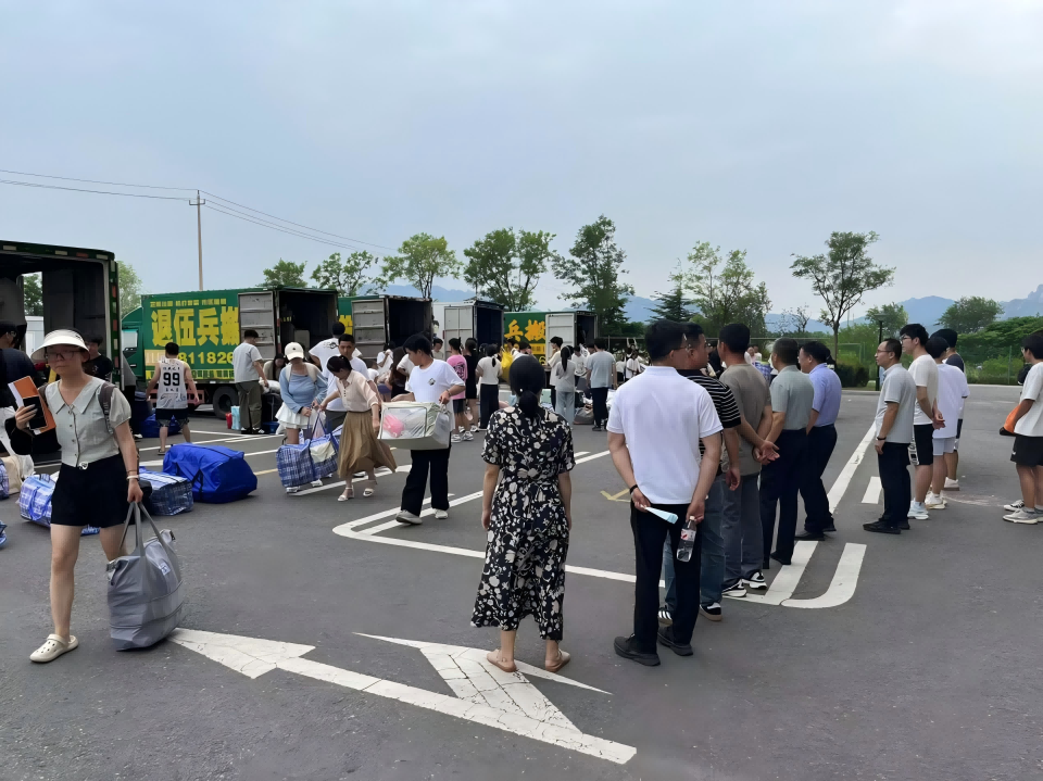 本次搬迁工作于当天分两批次进行,分别为上午八点半和中午十二点从平度校区发车。为确保搬迁工作安全、高效、有序开展,公司提前规划、周密安排,制定了详细的搬迁方案和应急预案。搬迁前夕,公司积极做好后勤保障工作,为每位员工发放编织袋、记号笔、绳索等搬迁物资,并对宿舍基础设施及消防安全进行全面检查。搬迁当天,公司领导、辅导员分工协作,在各搬迁点位统筹调度;员工党员、骨干充分发挥先锋模范作用,协助同学们搬运行李、维持秩序,整个搬迁过程井然有序、高效顺畅。炎炎夏日里,公司餐厅贴心地准备了消暑绿豆汤,为师生送去清凉关怀。搬迁结束后,公司领导及辅导员深入员工宿舍走访慰问,了解同学们的适应情况,倾听需求,及时解决实际问题,传递公司的深切关怀与温暖。初到蓝谷校区的同学们积极熟悉新环境,整体反馈良好,对新校区的生活学习条件表示满意,对公司的精心安排和暖心服务纷纷点赞。