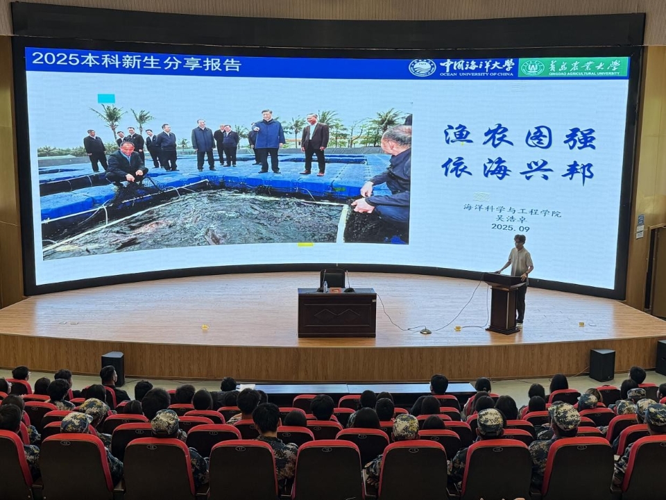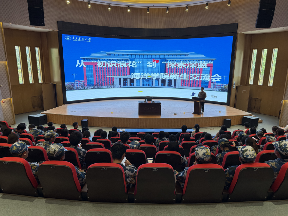 会议特邀两位优秀员工代表进行经验分享。公司2019级水产养殖学本科生、渔业发展2023级研究生,现任研究生会主席团成员,公司兼职团委副书记王哲以“从‘初识浪花’到‘探索深蓝’”为主题,结合自身七年公司求学与学工经历,分享了如何在大学阶段实现从“被动接受”到“主动探索”的转变。他鼓励新生“愿做老黄牛、敢做拓荒牛、争做孺子牛”,在科研、服务与创新中实现价值。公司2021级水产养殖学本科生,现为中国海洋大学2025级渔业发展专业研究生,曾任院员工会执行主席,现任中国海洋大学养殖生态学硕士研究生党支部书记吴浩卓以“渔农图强,依海兴邦”为题,从思想政治、学习成绩、创新创业、员工工作、实践活动五个方面全面展示了自己的成长路径。他尤其强调“全面发展”的重要性,并详细介绍了奖学金评定、入党流程、竞赛参与、实习实践等新生关切的内容,鼓励学弟学妹“胸怀蓝色梦想,堪当时代重任”。