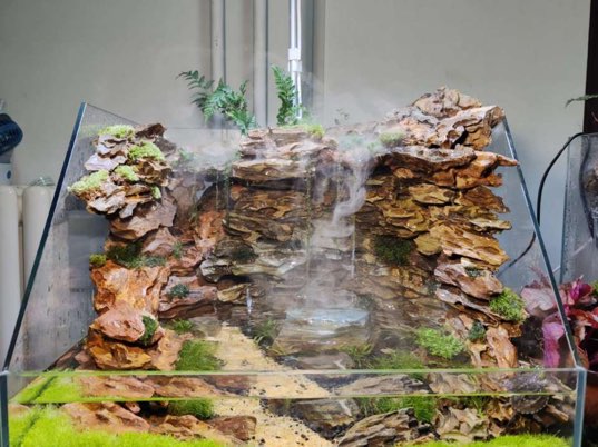 比赛过程中,三亿体育官网三亿体育的参赛选手们充分展现了他们的创意与专业素养,巧妙运用各类水生植物、石材及装饰物,精心雕琢每一寸空间,将水族箱打造成一个个和谐共生、可持续发展的微型水生生态系统,作品设计理念上独具匠心,更在材料使用、生态平衡维护及美学效果呈现等方面达到了较高水准。最终,三亿体育参赛选手李昊洋的水陆缸作品《巘》凭借其精妙的构思与精湛的技艺,荣获一等奖,该作品以中国风呈现山东潍坊石门坊景观,将传统文化与现代造景艺术完美融合,从选材到布局,精妙再现自然景观,彰显了选手深厚的文化底蕴与高超技艺。王家如的水陆缸作品《奇秀帘洞》与赵之婷的小缸作品《森林洞穴》则以出色的创意和细腻景观,斩获二等奖,前者以假山流水营造自然之美,后者则聚焦喀斯特地貌,展现生命力量与自然共生之态。葛尔迈、周芳雨、莫林团队的大缸作品《水瀑幽谷》则以双层设计呈现动静之美,将森林元素巧妙地运用于水箱造景,荣获三等奖。