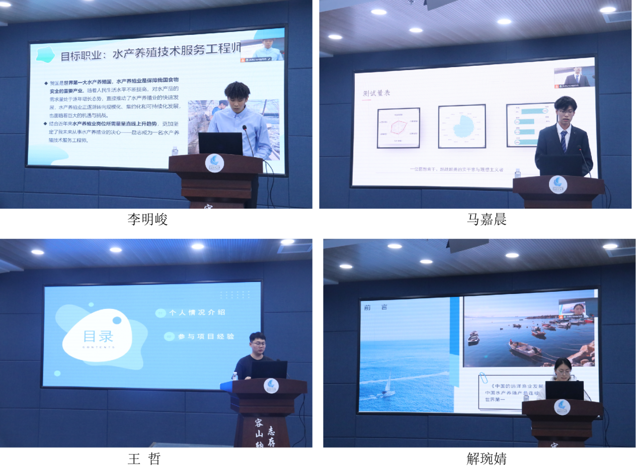 本次大赛采用线上和线下结合方式,分成长赛道与就业赛道两个赛道。成长赛道的参赛者从职业规划的科学性、成长过程学习实践等方面展现了自己的职业规划。就业赛道的参赛者从求职能力、发展路径、与社会发展的适应度、和与岗位的契合度等方面展现了自己的职业规划。评委老师结合选手ppt设计和现场展示、现场应变能力等方面打分并提出指导意见。经过精彩展示和激烈比拼,水产养殖学2203班李明峻获得一等奖,水产养殖学2203班马嘉晨、水产养殖学2103班田坤禾获得二等奖,渔业发展2023级王哲、水生动物医学2201班解琬婧、海洋资源与环境2302班孔德宁获得三等奖,海洋资源与环境2302班李自政、水族科学与技术2302班孙正获得参与奖。