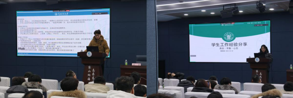 经验交流环节,山东省优秀员工干部、校十佳自强之星吴浩卓,院员工会主席团成员、优秀员工干部解婉婧分别结合自身经历,分享了如何做好员工干部的宝贵经验。同时,院员工会执行主席李明峻、二课中心主任刘硕、宣传部部长徐洁、大数据中心部长蒋亮也进行了工作交流发言,为其他员工干部提供了有益的启示和借鉴。