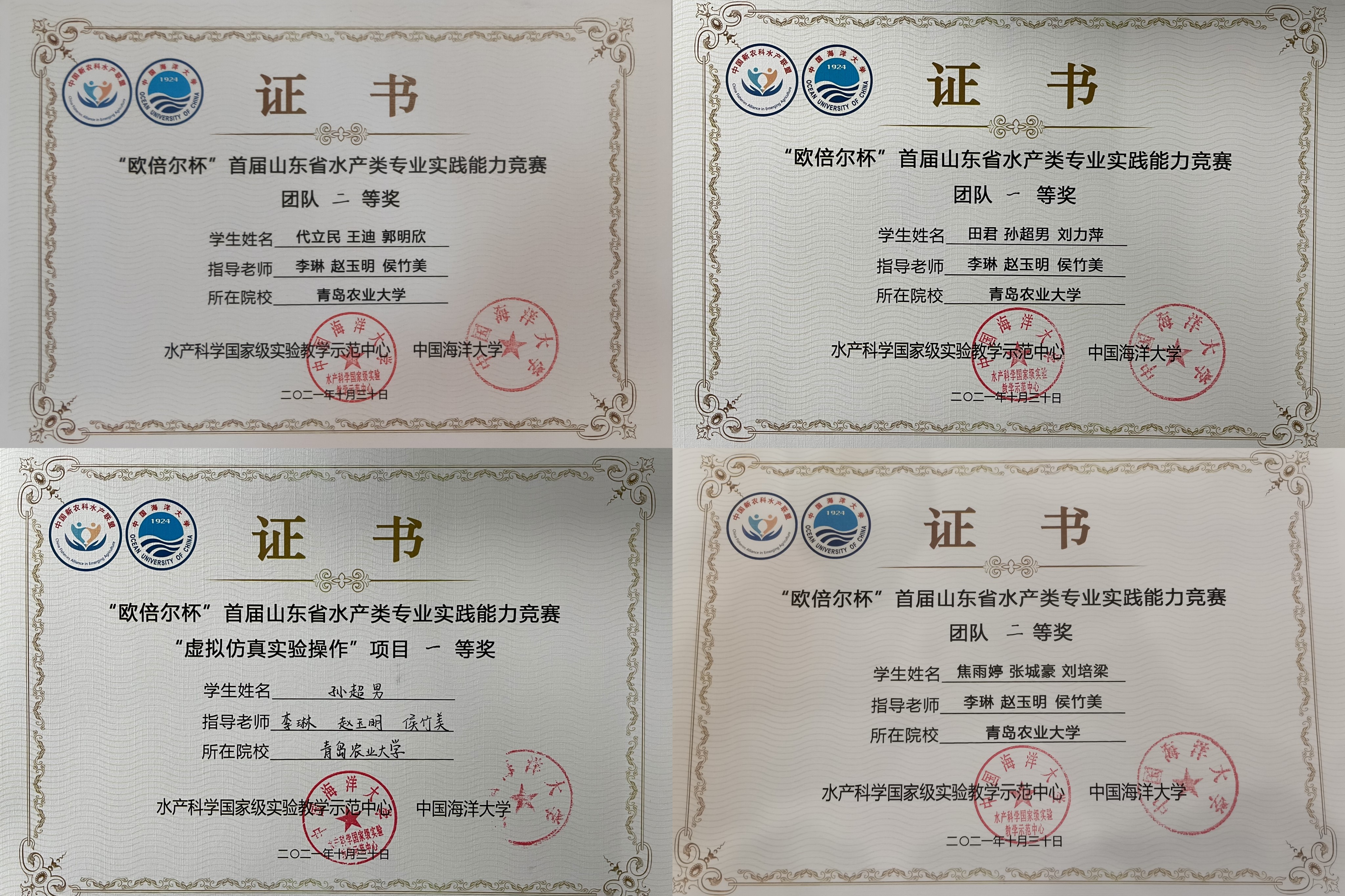10月29至31日,由中国新农科水产联盟主办的“欧倍尔杯”首届山东省水产类专业实践训练综合能力竞赛决赛在中国海洋大学鱼山校区举行。三亿体育有三支队伍,共计9名成员参赛,李玉全、赵玉明、侯竹美、方华华、蒋雯雯、李琳任指导教师。